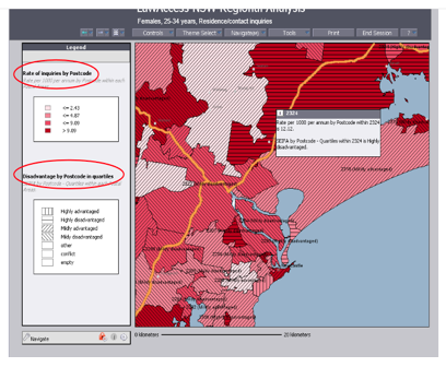 - Combining sources e.g. spatial displays of the association between legal need and census-based measures of socioeconomic disadvantage (e.g. as used in Australia – shown in the screen shot taken from one of the conference presentations).