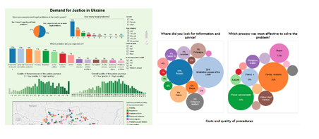We also saw some examples of how data on legal needs and problem resolution can be presented in interactive ways, to help decision makers and the public people engage. For example, HiiL showed some visualisations (screen shots from the conference presentations below) being used to collate justice demand indicators, and advice-seeking behaviour.