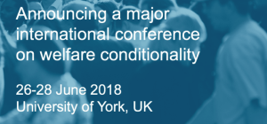 Welfare Conditionality welcomes proposals for papers from those working within and beyond the social sciences on any aspects of welfare conditionality and associated debates for an international conference, Welfare Conditionality: Principles, Practices and Perspectives, to be held at the University of York on 26-28 June 2018.