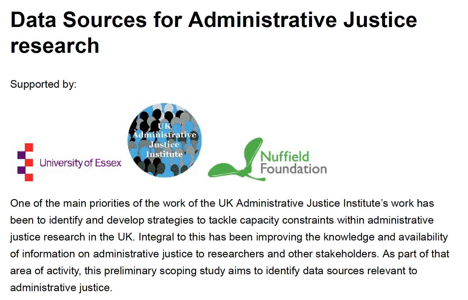 Data Sources for administrative justice research (social security), by Kakia Chatsiou (March 2018)